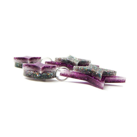 Purple and Rainbow Glitter Starburst Dangle Earrings