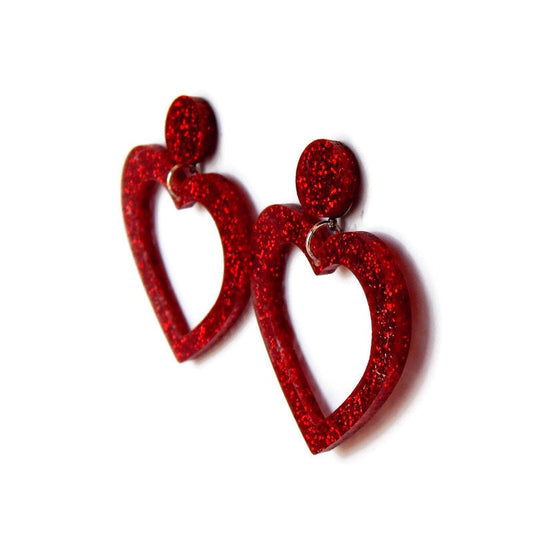 Red Glitter Acrylic Heart Hoop Earrings