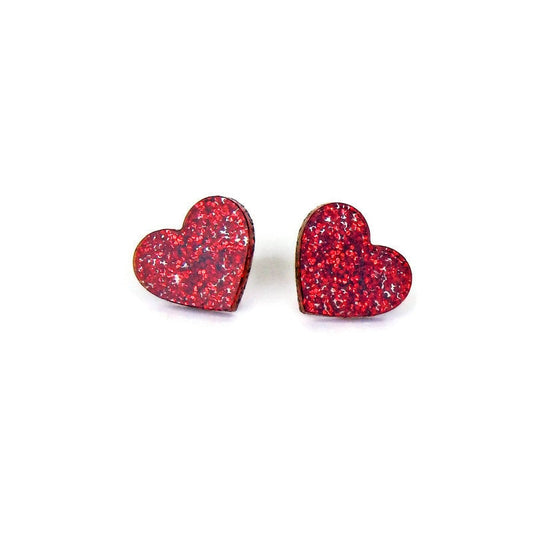 Red Glitter Heart Stud Earrings