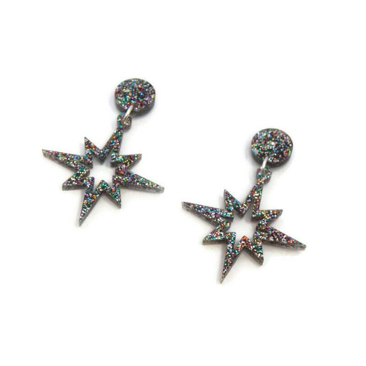 Rainbow Glitter Starburst Cut Out Dangle Earrings