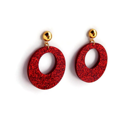 Red Glitter Vintage Style Drop Hoop Earrings