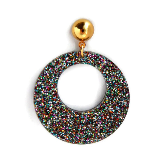 Rainbow Glitter Retro Hoop Earrings