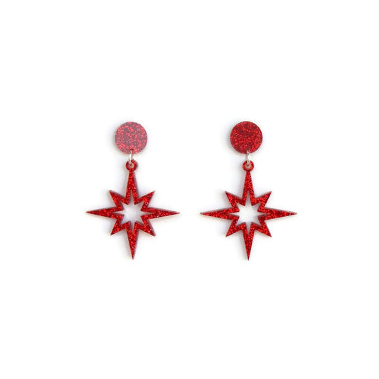 Red Glitter Starburst Cut Out Dangle Earrings