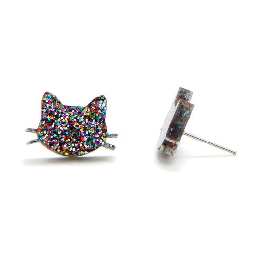 Rainbow Glitter Cat Stud Earrings