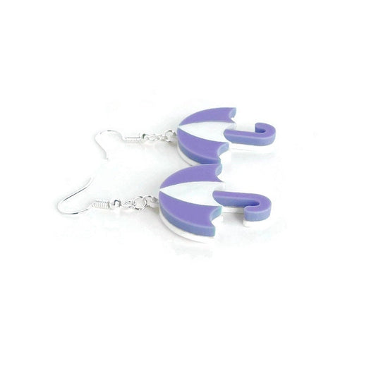 Purple and White Umbrella Dangle Earrings