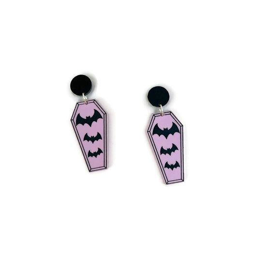 Purple and Black Bat and Coffin Earrings