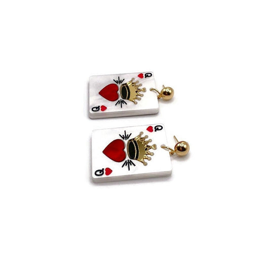 Queen of Hearts Playing Card Earrings