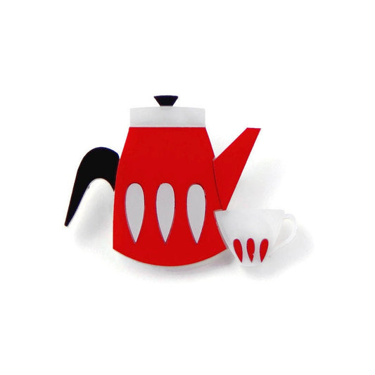 Retro Red Coffee Pot Brooch