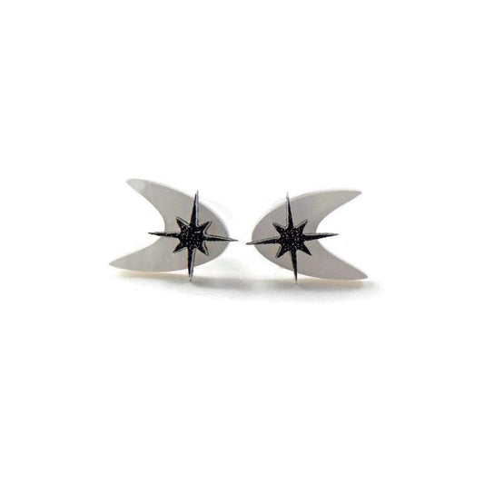 Retro White Boomerang Stud Earrings