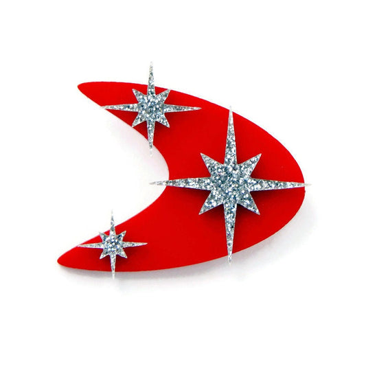 Retro Red and Silver Boomerang Brooch