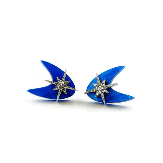 Retro Blue Boomerang Stud Earrings