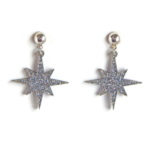 Silver Glitter Starburst Dangle Earrings
