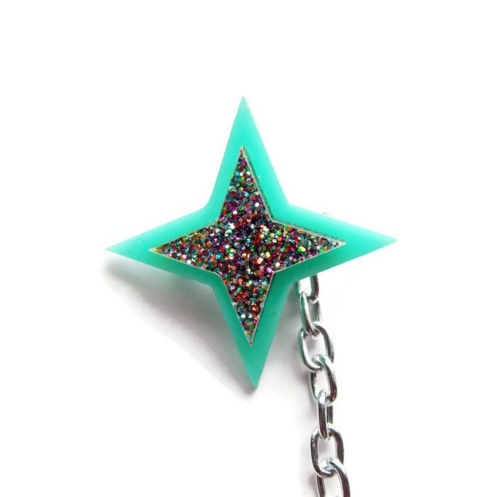 ★ Double layered glitter acrylic: rainbow glitter star on aqua star