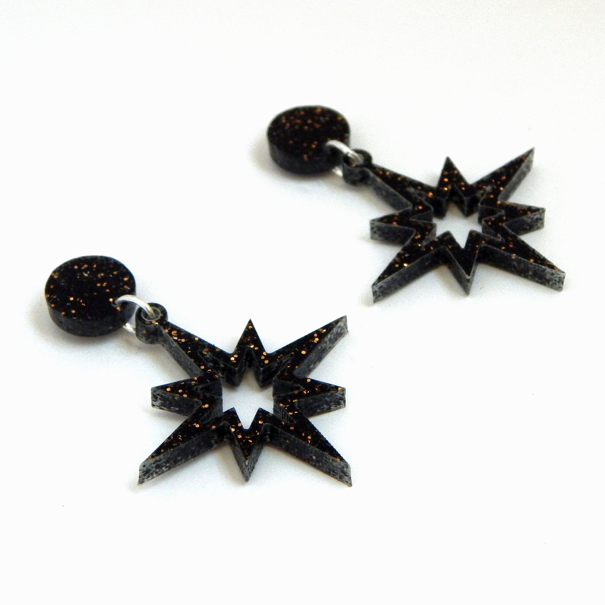 Black and Gold Glitter Starburst Dangle Earrings