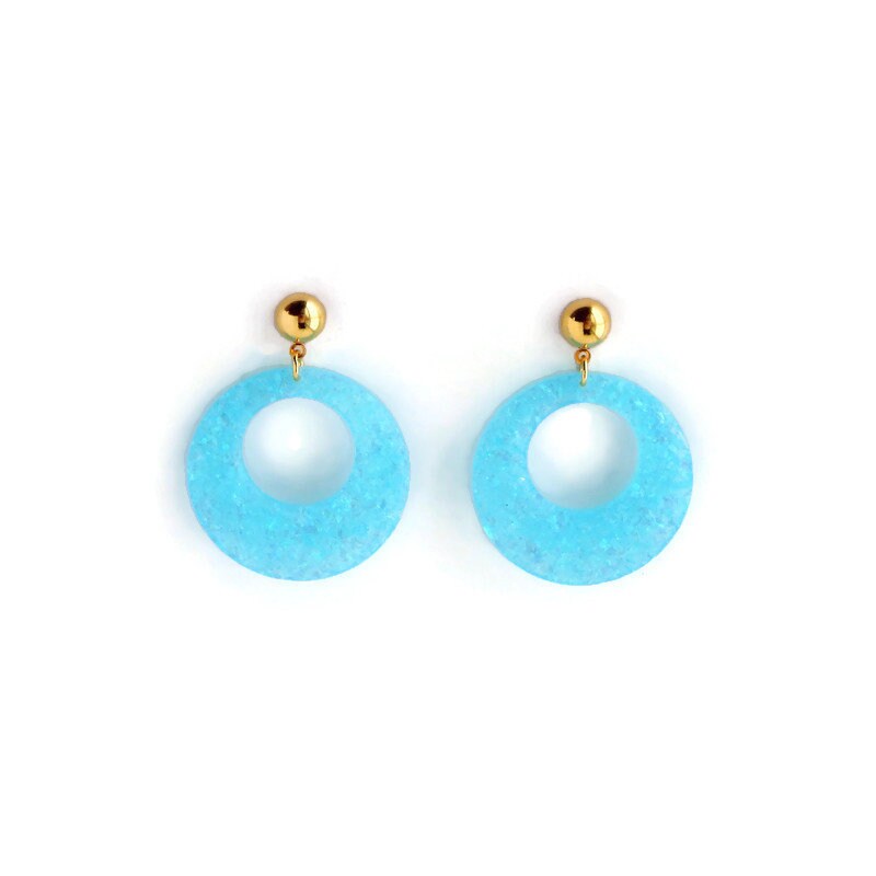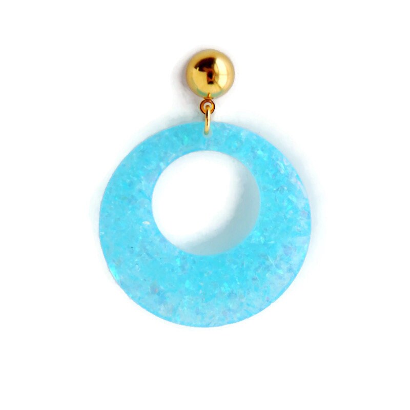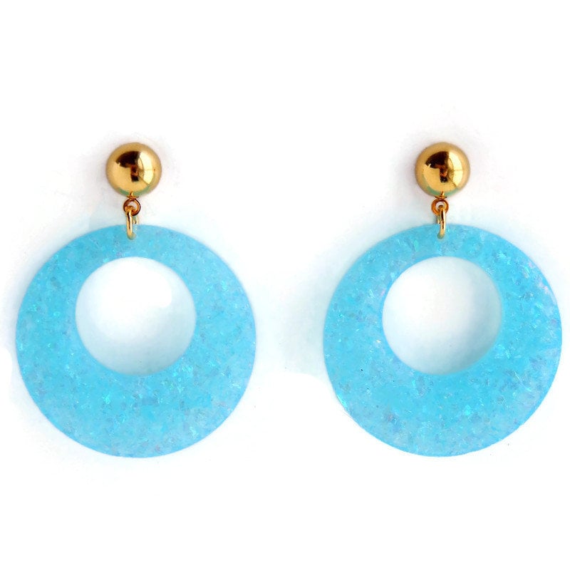 Blue Glitter Acrylic Mod Circle Hoop Earrings