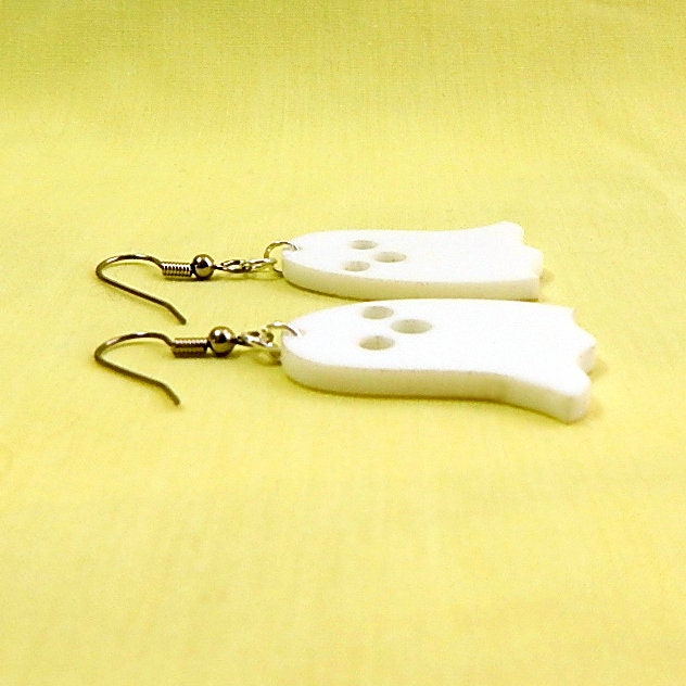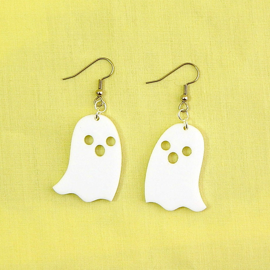 These earrings are the perfect accessory for Halloween or to add a little spookiness to your everyday wardrobe. Handmade from white laser cut acrylic, these earrings are large and lightweight. Each ghost measures 34 mm H x 24 mm W and is attached to a hypoallergenic nickel free earring wire for sensitive ears.