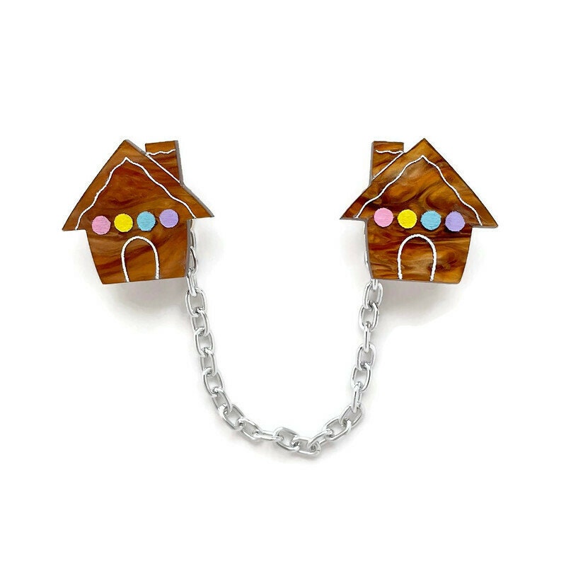 Perfect for the Holiday season, this cute sweater clip will add retro Christmas style to any outfit. Laser cut from brown marble acrylic and finished with hand painted details for a gorgeous finish.