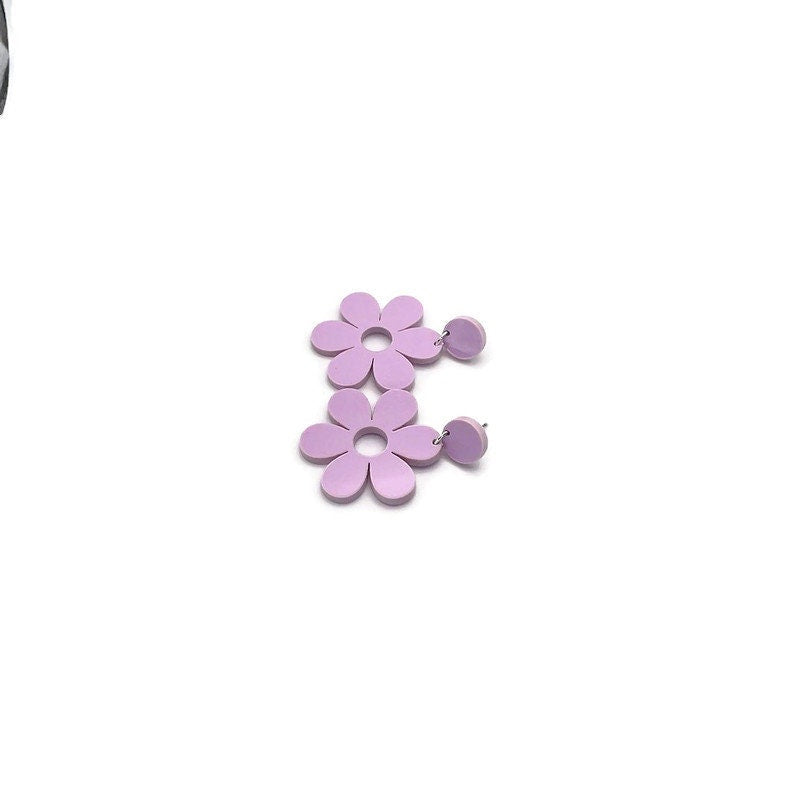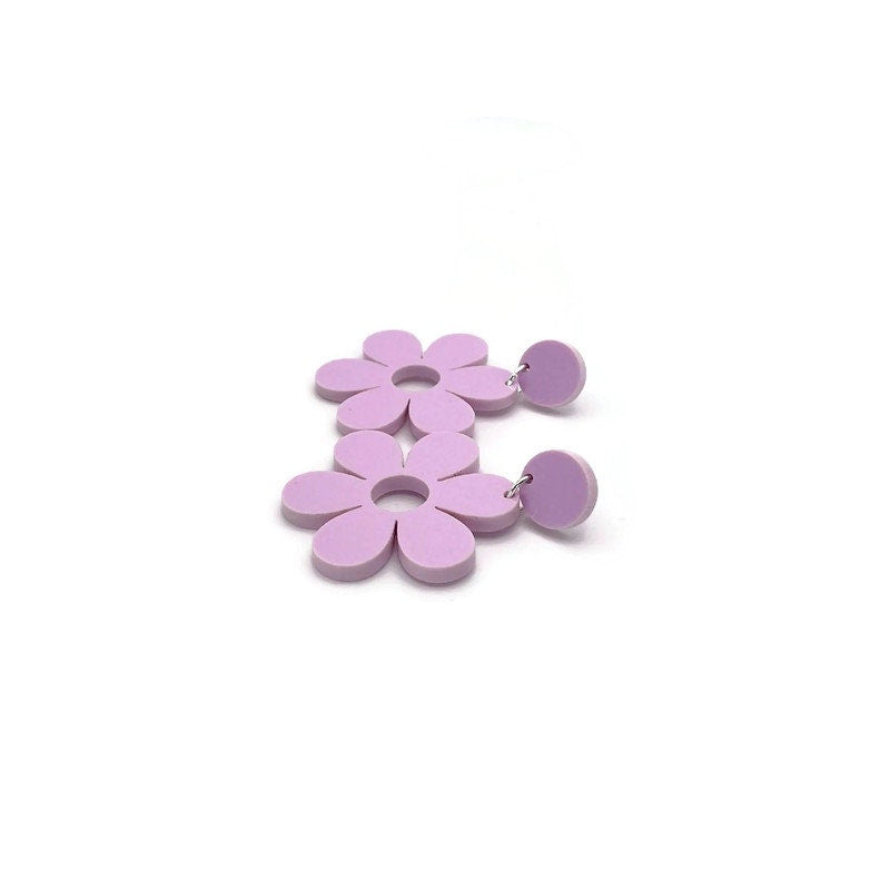 These retro style lilac purple daisy earrings are the perfect summer accessory. Lightweight and easy to wear, these fun retro earrings are perfect for everyday wear or special occasions.