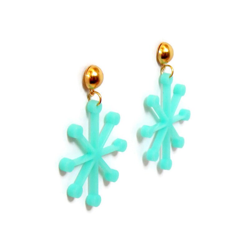 Aqua Mid Century Modern Sputnik Dangle Earrings