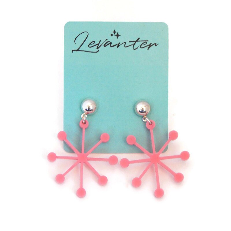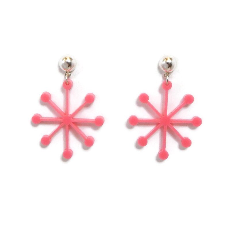 Pink Mid Century Modern Sputnik Dangle Earrings