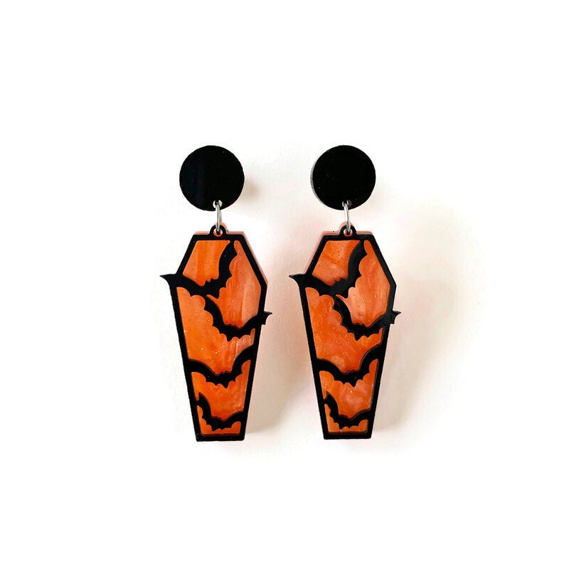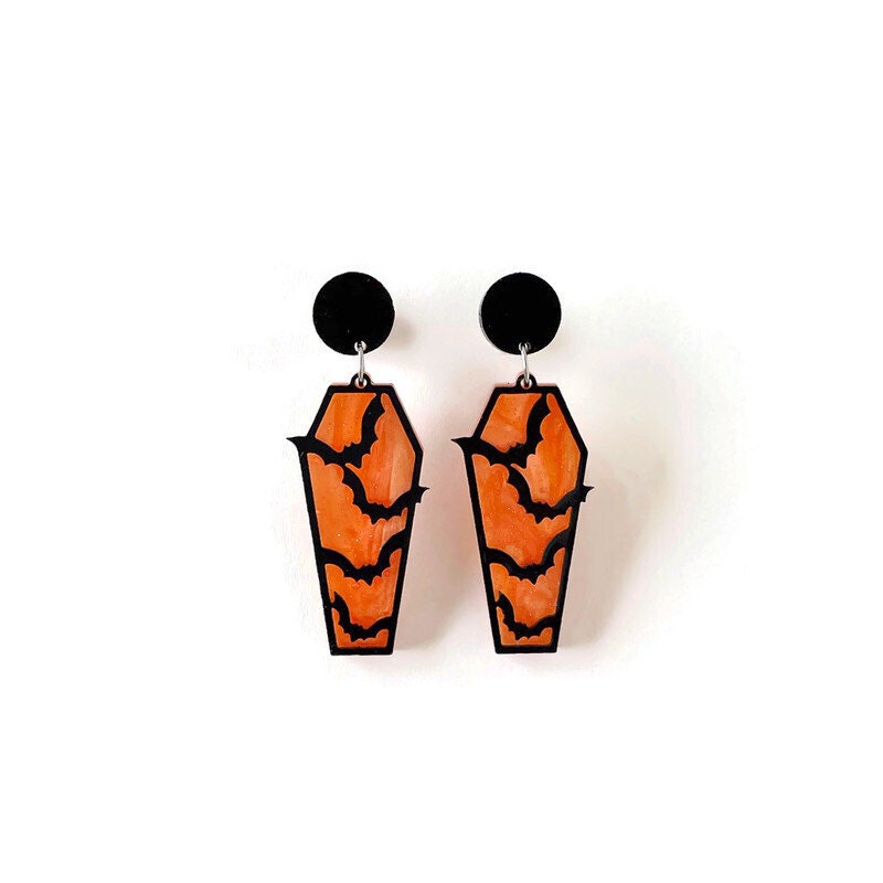 When you want to look spooky and cute, these batty coffin earrings are the answer to your Halloween style desires!