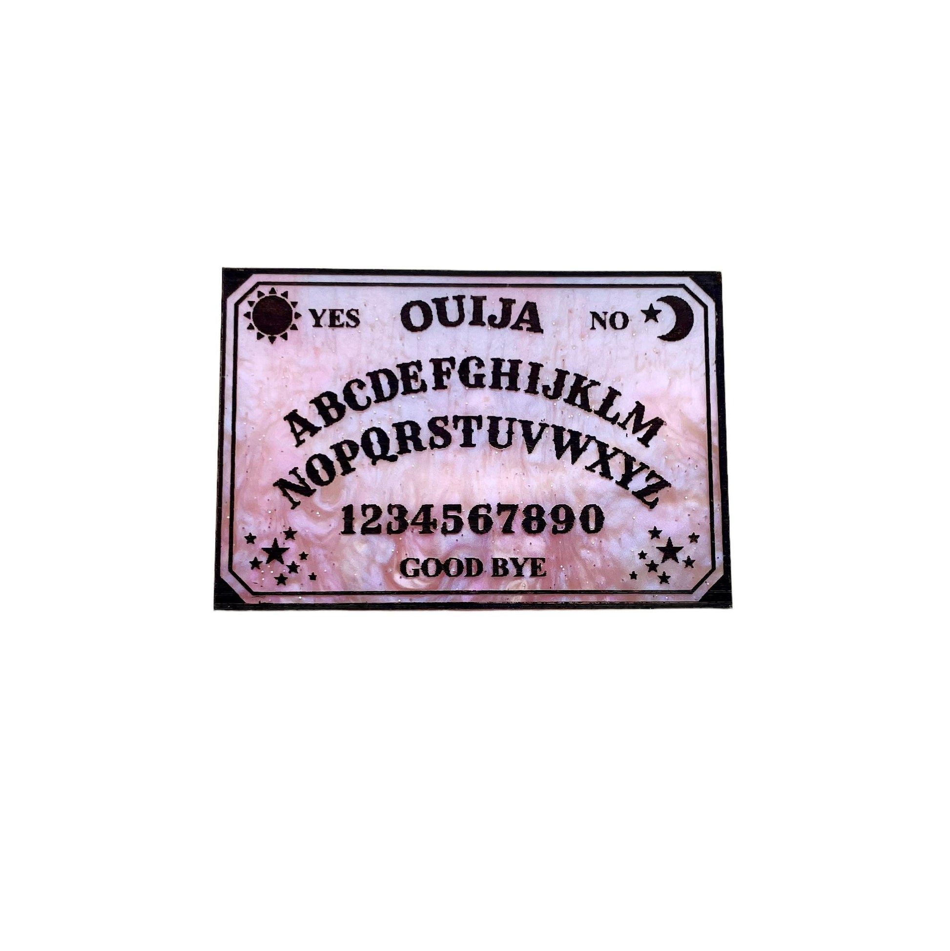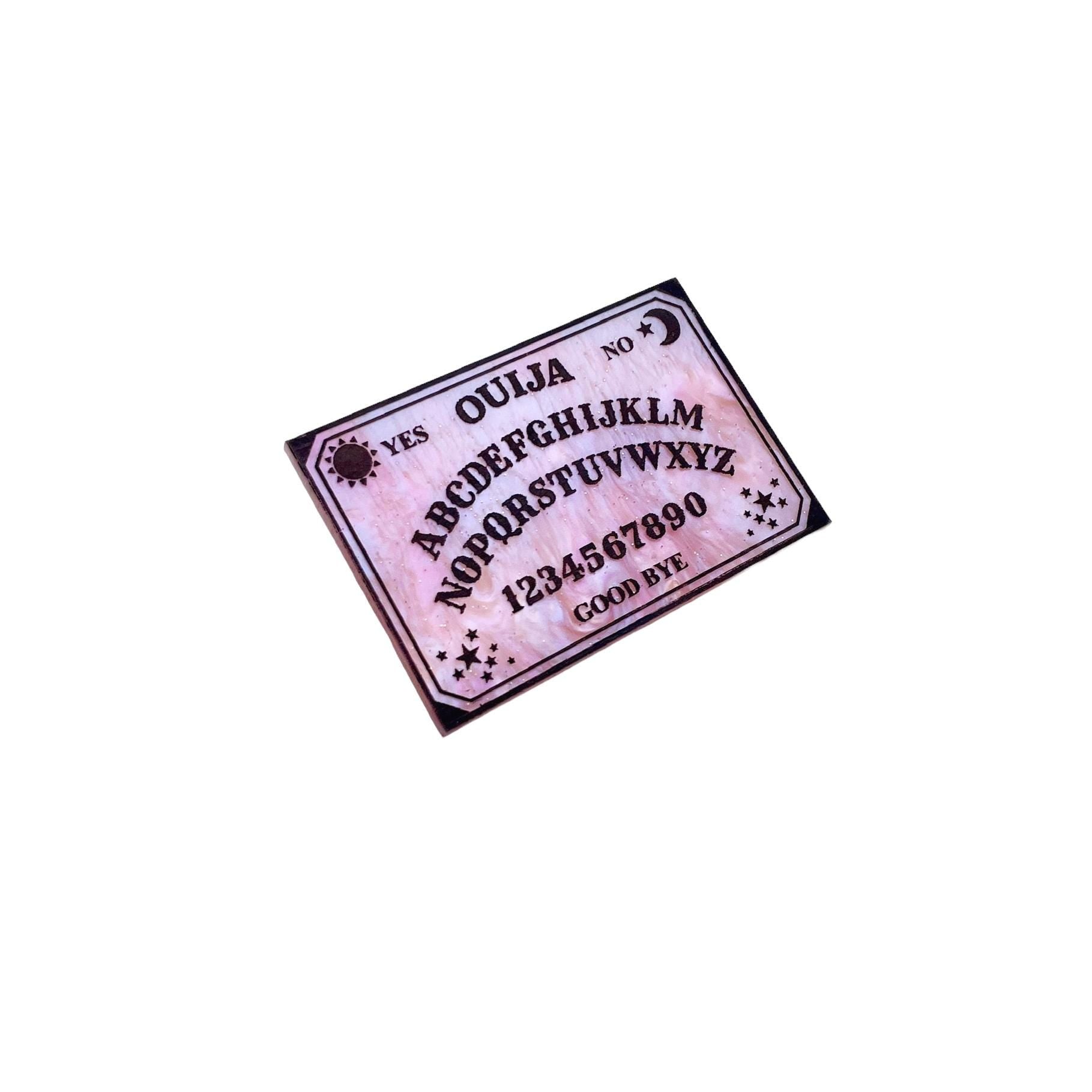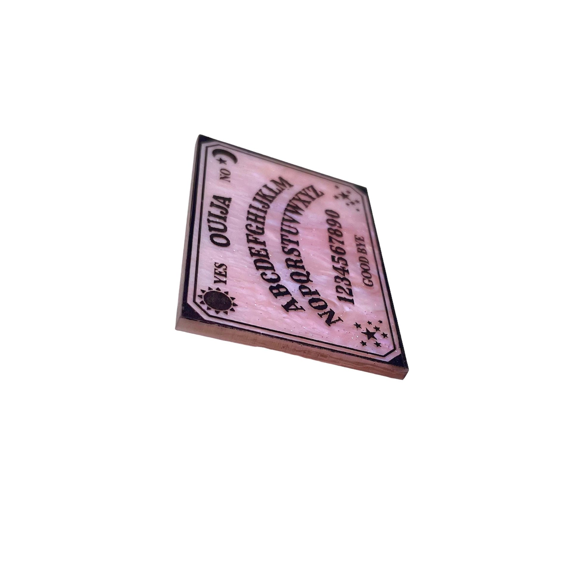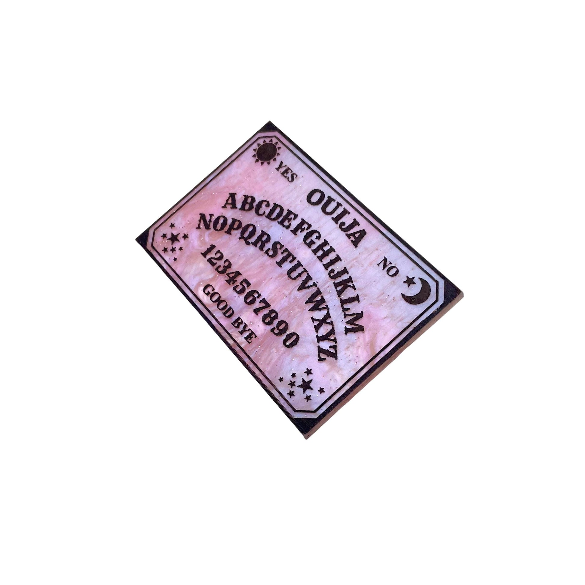 Step into the world of the supernatural with this mesmerizing Pink Iridescent Spirit Board brooch! Handcrafted from stunning pink iridescent acrylic, this brooch shimmers and shifts with every angle, making it a truly captivating accessory. The intricate laser-engraved details, hand-painted in bold black, bring the iconic spirit board design to life in a modern and stylish way. Measuring 2.5 inches wide by 1.875 inches high, this brooch is the perfect size to add a touch of mystical elegance to any outfit. Whether you’re fascinated by the occult, adore unique statement pieces, or simply want to add a hint of enchantment to your wardrobe, this brooch is sure to attract attention and spark curiosity. Pin it on your favorite jacket, bag, or scarf, and let your style take on a life of its own!