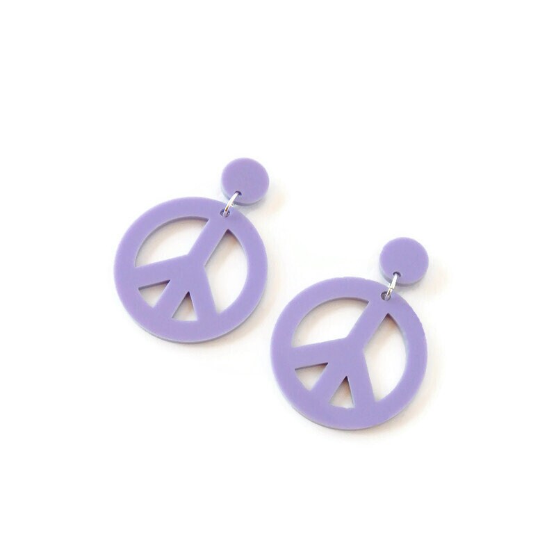 Get all those hippie vibes with these purple peace sign earrings – and all without extra weight on your ears.