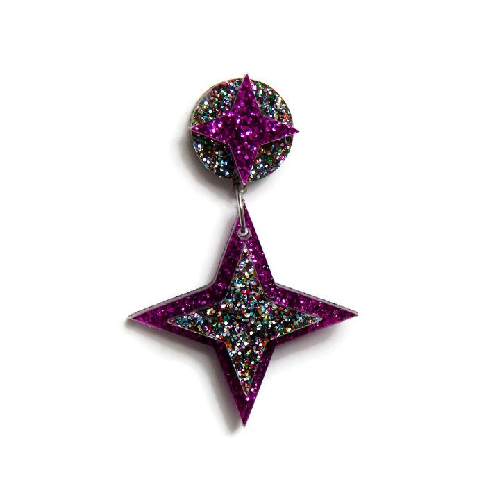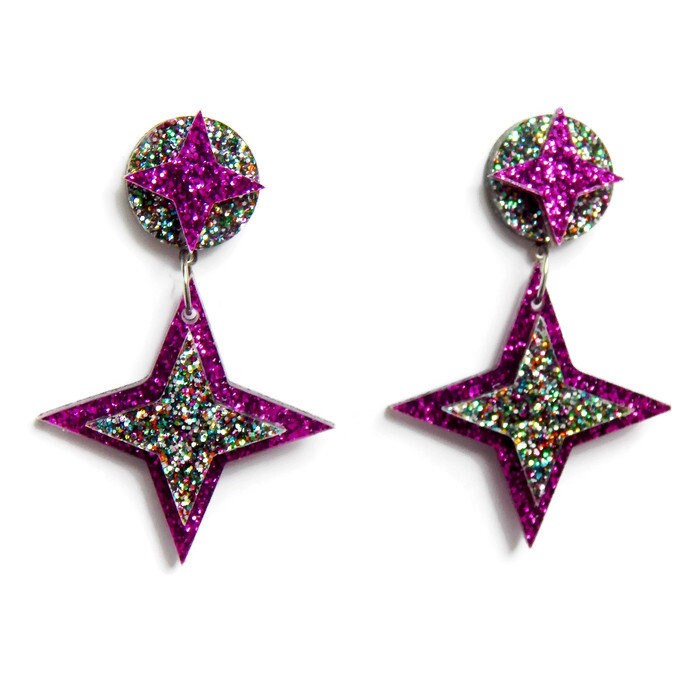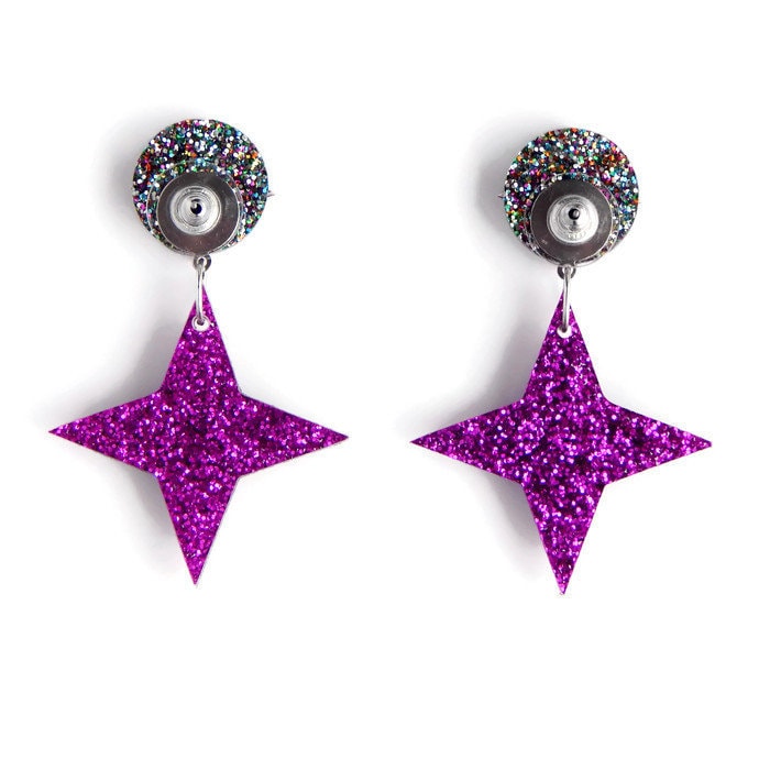 Fun and sparkly these purple atomic starburst earrings are a modern twist on a vintage style.