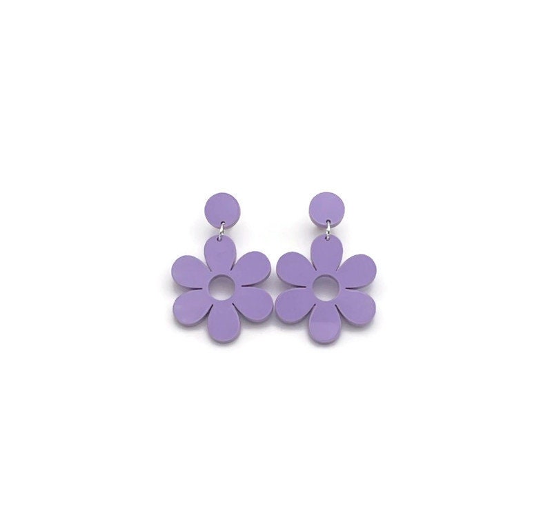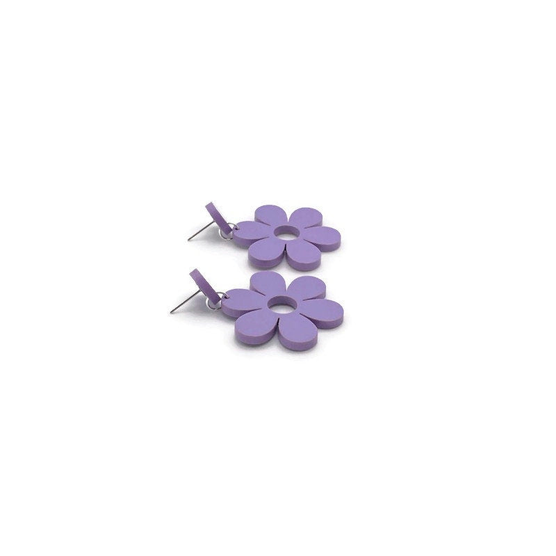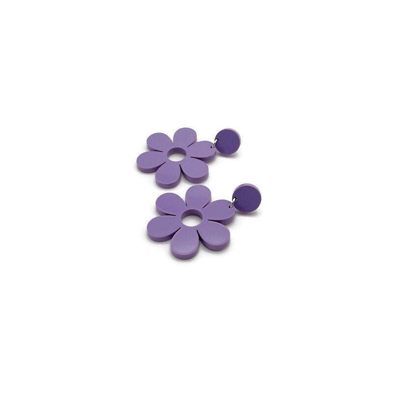 These retro style purple daisy earrings are the perfect summer accessory. Lightweight and easy to wear, these fun retro earrings are perfect for everyday wear or special occasions.