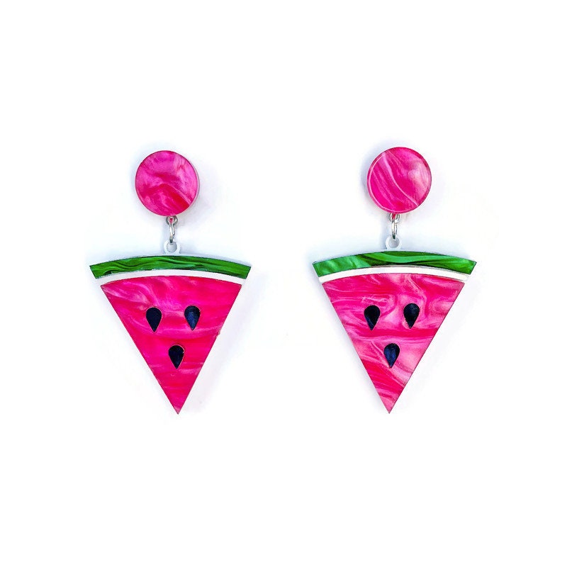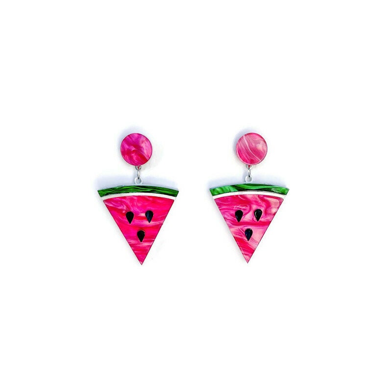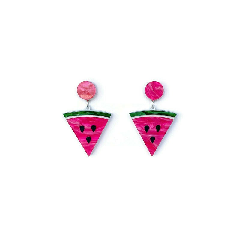 These watermelon earrings are created with lightweight pearl acrylic to add style and beauty without the extra weight.